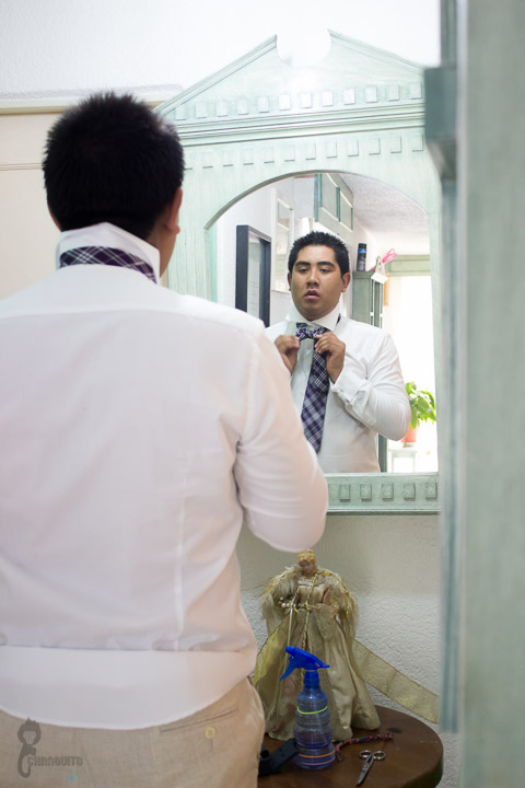 Llegamos muy temprano primero a la casa de Diego ya que se encontraba algo retirado del lugar de la boda y teníamos miedo de llegar tarde debido a que no circulábamos y eso nos atrasaba todo por los trayectos tan largos, ahí se quedo Adriana quien hizo las fotos del arreglo del novio y mientras los demás del equipo nos fuimos directo a buscar a Wendi.