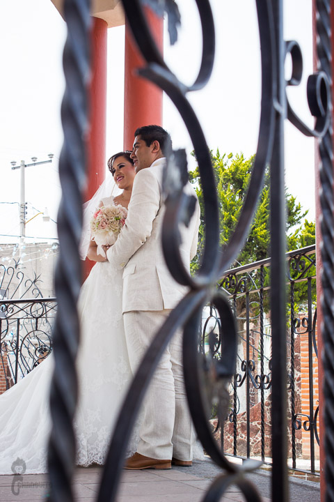 La ceremonia fue muy emotiva ellos lucían radiantes de felicidad, las fotos las hicimos en el kiosco del atrio y regresamos a la recepción donde nos recibieron con paletas de hielo que mitigaron el calor que teníamos, fue una fiesta muy típica desde la comida y ambientada por mariachi.