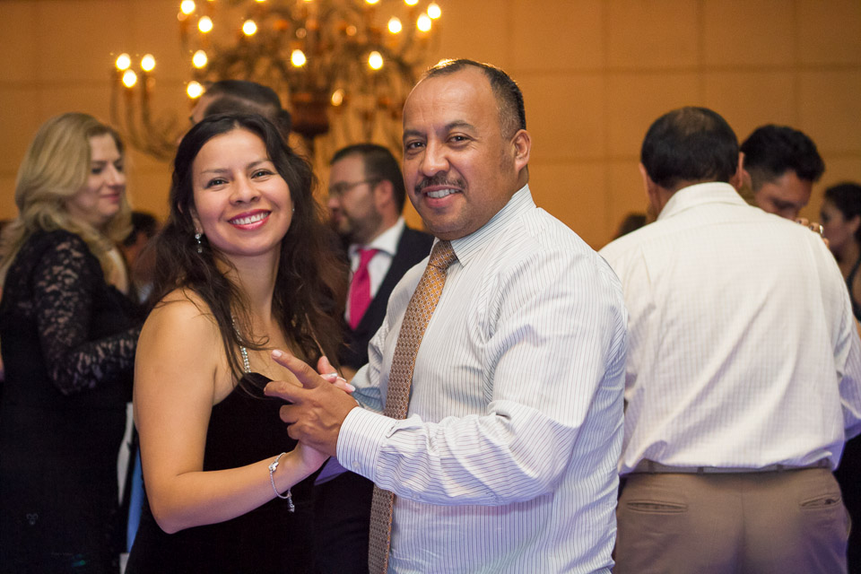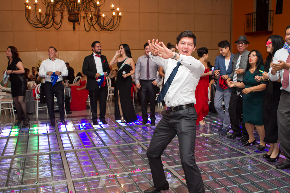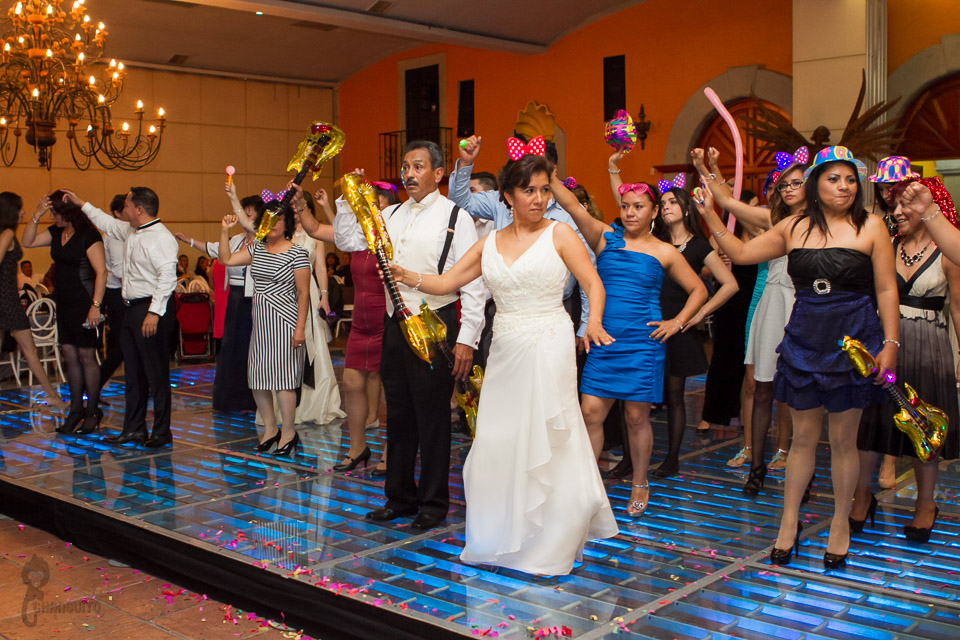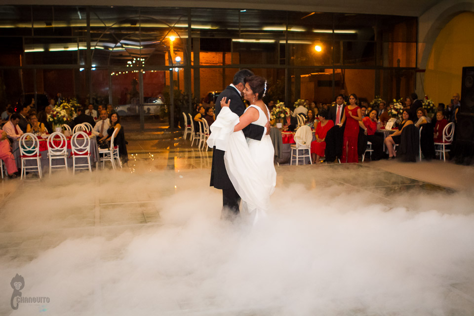 La fiesta fue en un salón muy elegante y estuvo llena de muchos invitados, amigos de muchos años de los novios que han compartido con ellos muchas etapas y toda la familia que siempre están en los momentos importantes, los novios abrieron pista con una hermosa pieza de Rocío Durcal, y así dio inicio el baile, sus hijos, damas y padrinos bailaron con ellos y partieron el pastel para después continuar con la fiesta que fue muy divertida.