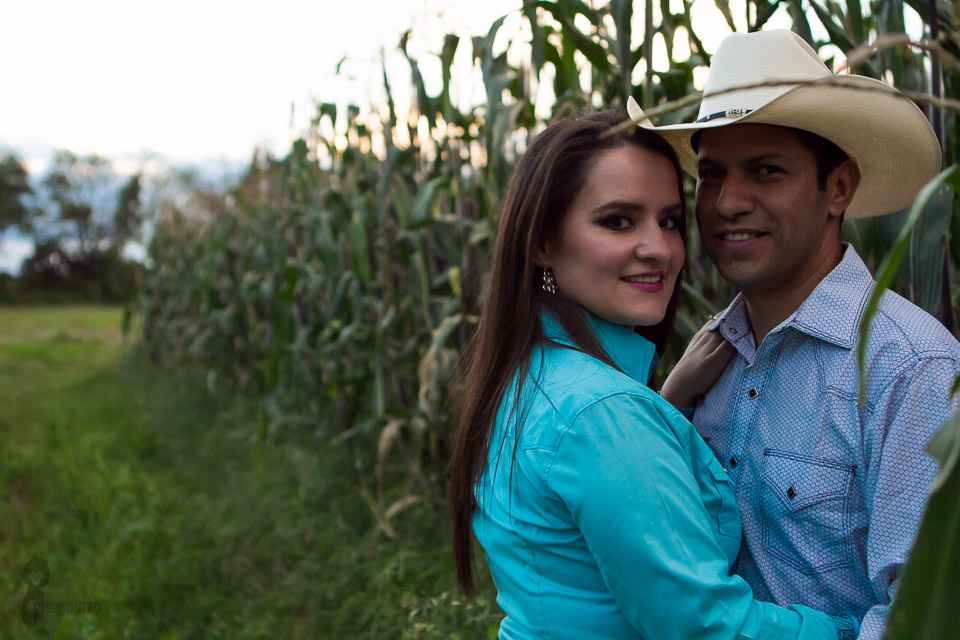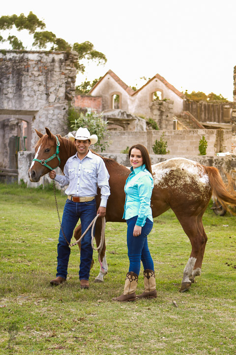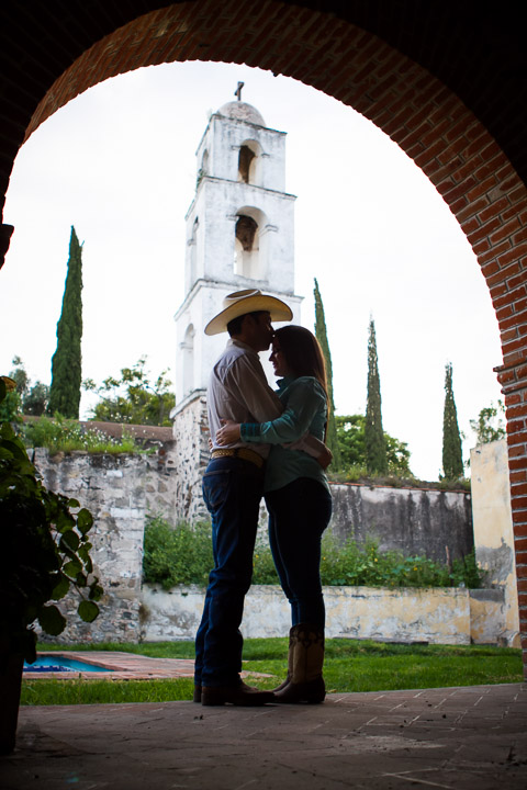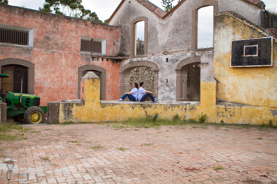 La sesión la hicimos en una hacienda propiedad de la familia donde se llevara acabo la boda y la verdad es que desde que llegamos fue muy grato estar ahí, es un lugar maravilloso lleno de vegetación, agua, plantios, flores, caballos y vellos pasisajes y de verdad que estando ahí uno se transporta a otros tiempos ya pasados.