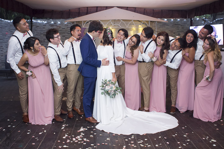 En el jardín nos esperaban los invitados entre ellos Alma hermana del novio y Pablo su esposo, ellos nos recomendaron porque les hicimos su boda hace un par de años, nos dio gusto encontrarlos ahí y les agradecemos su recomendación.
