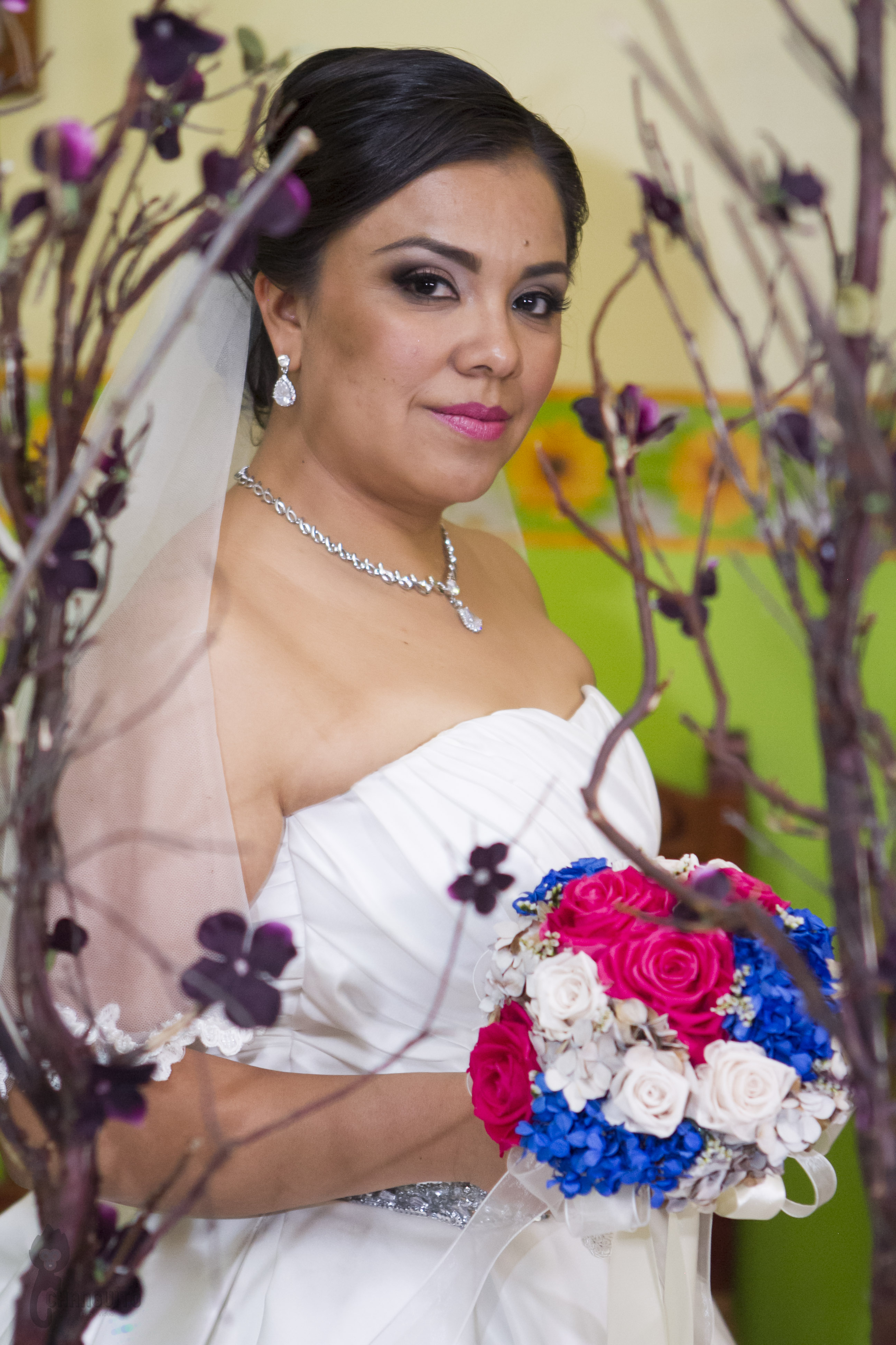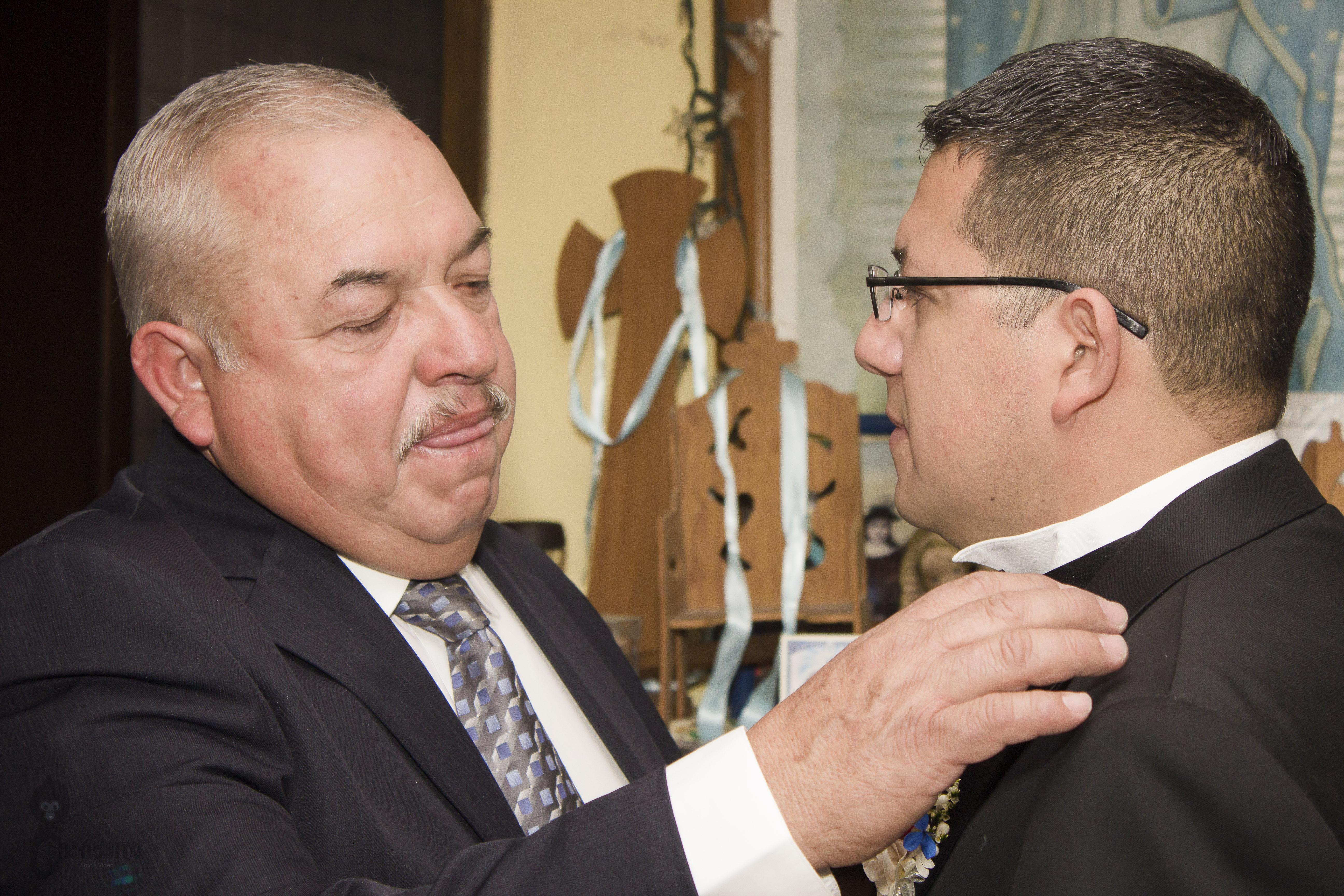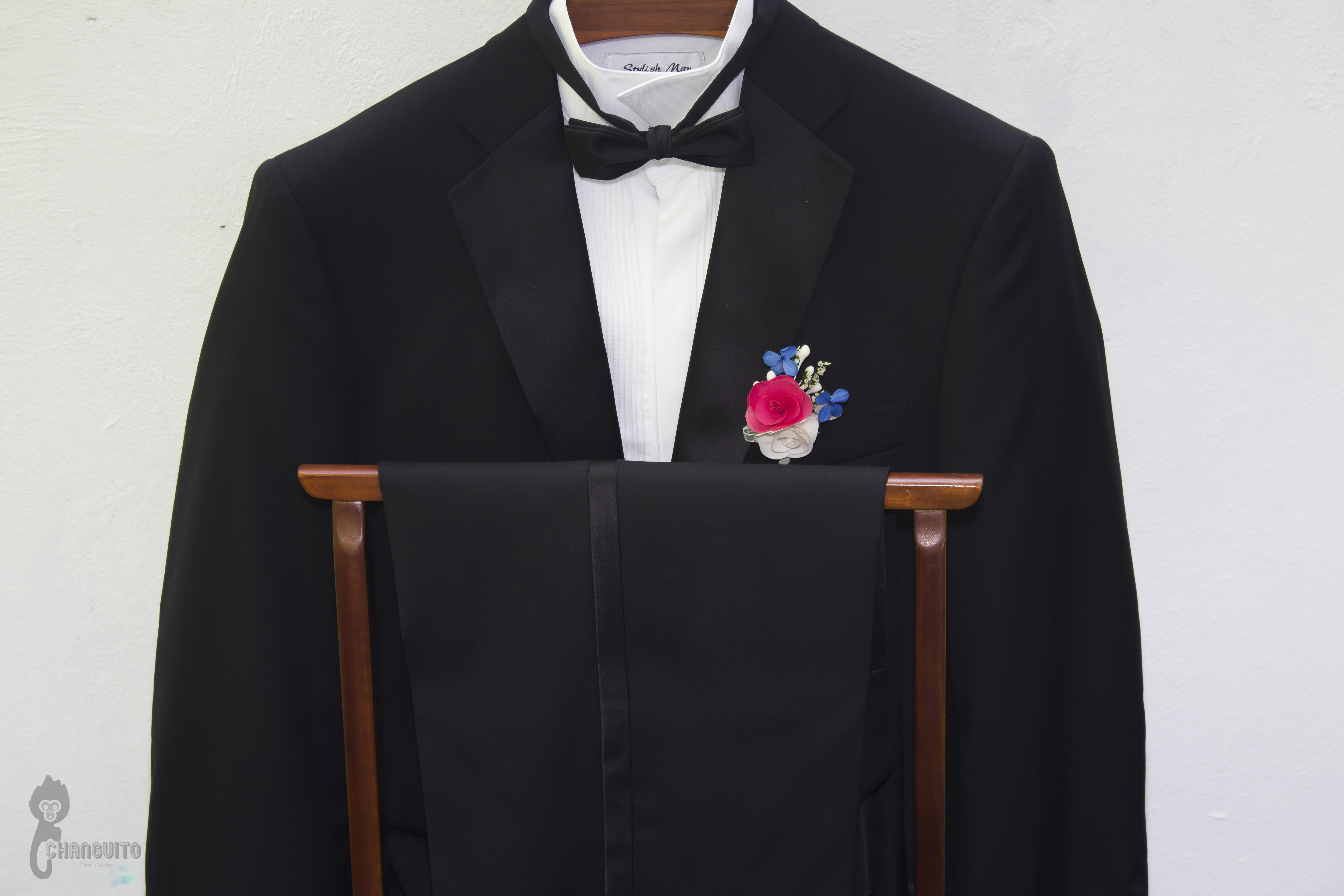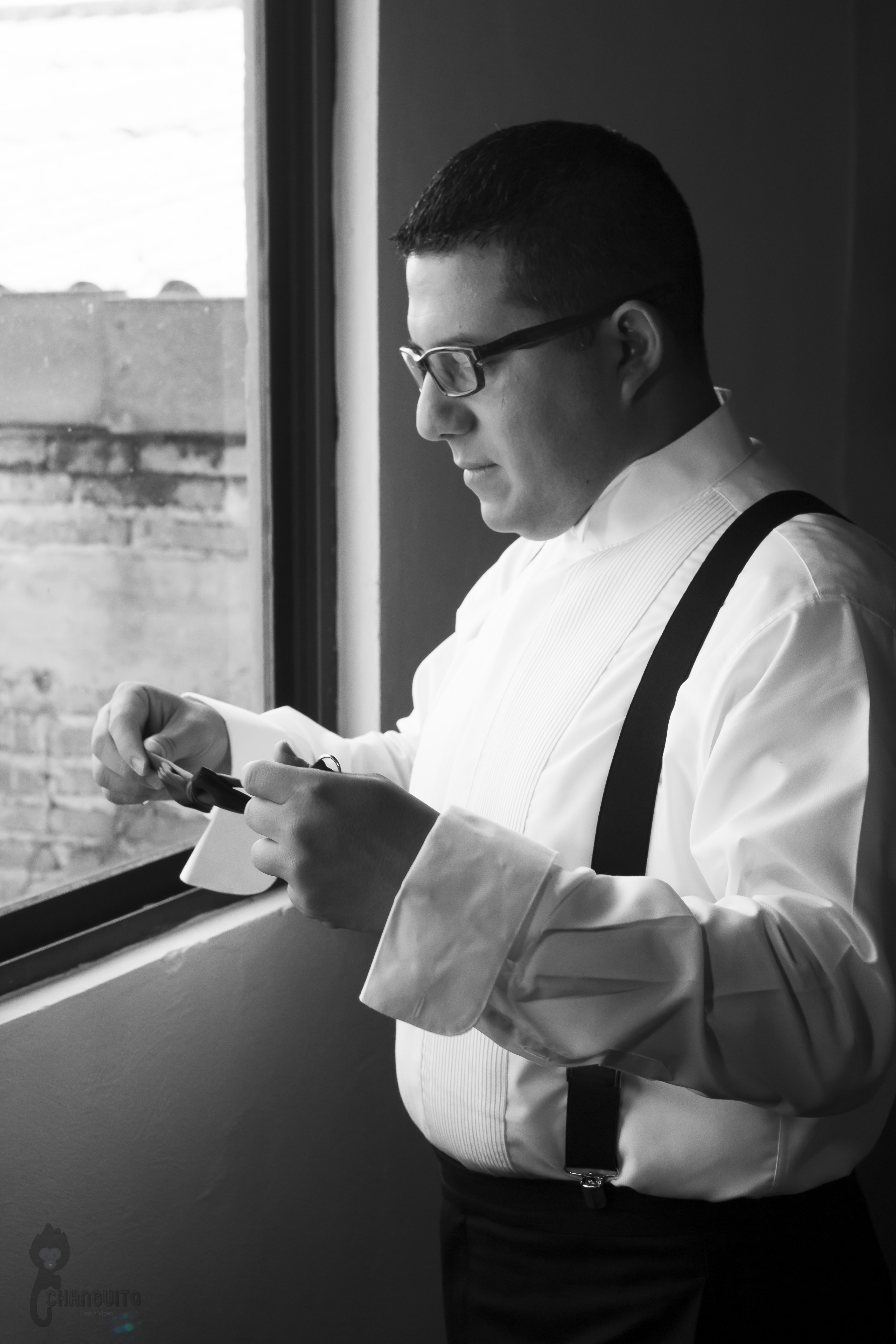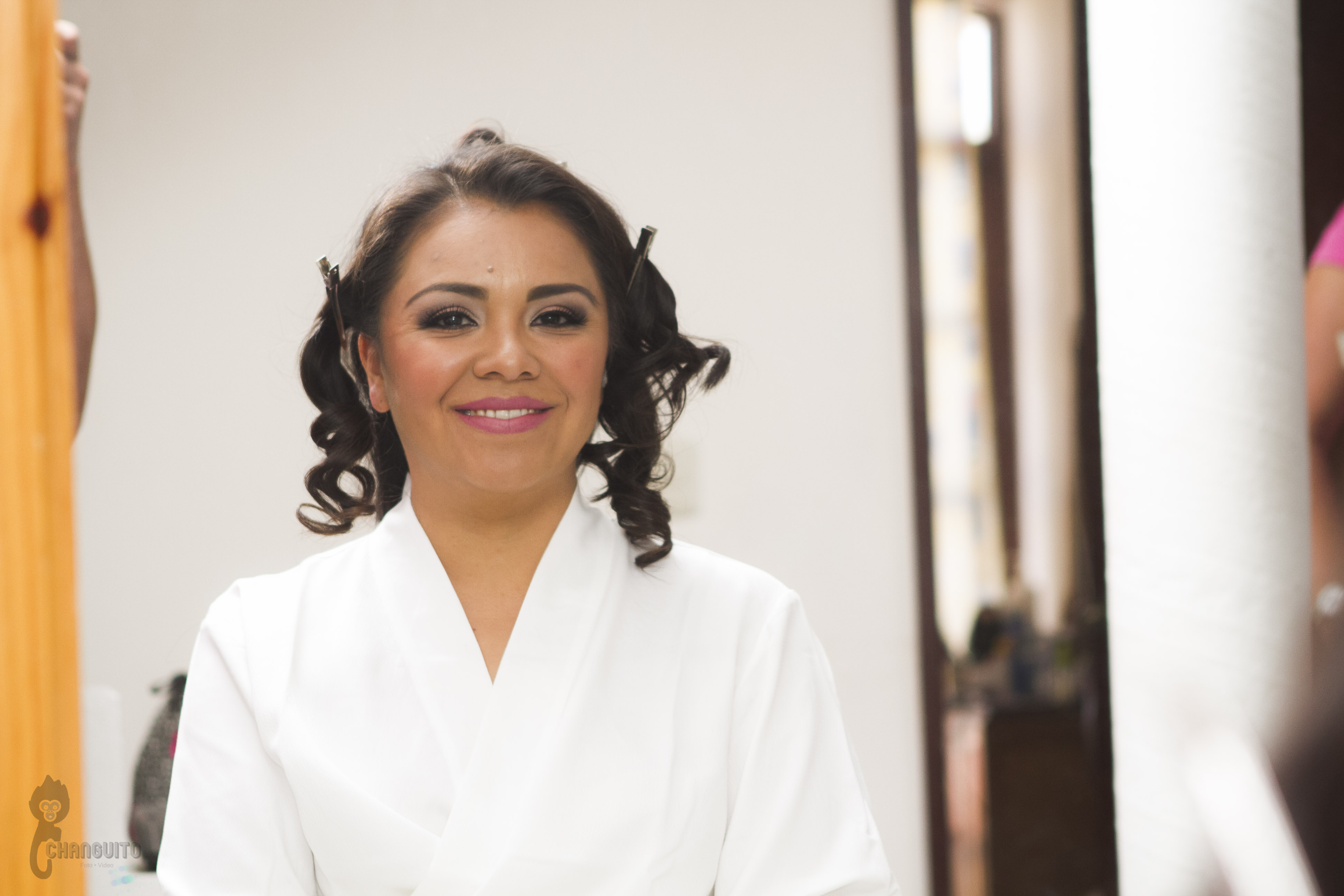 Llegamos temprano a casa de Marijo, éramos muchos en el lugar, nosotros cuatro (dos de foto y dos de video) para tener la mayor cobertura del evento más la familia, maquillistas, peinadores, chambelanes, mascotas y demás, todo era movimiento en el lugar pero siempre reino la calma y la alegría, Marijo nos dio acceso a su recamara y ahí estaba su vestido y nos dimos a la tarea de hacer lo que tanto nos gusta, un registro meticuloso de detallitos y demás accesorios.