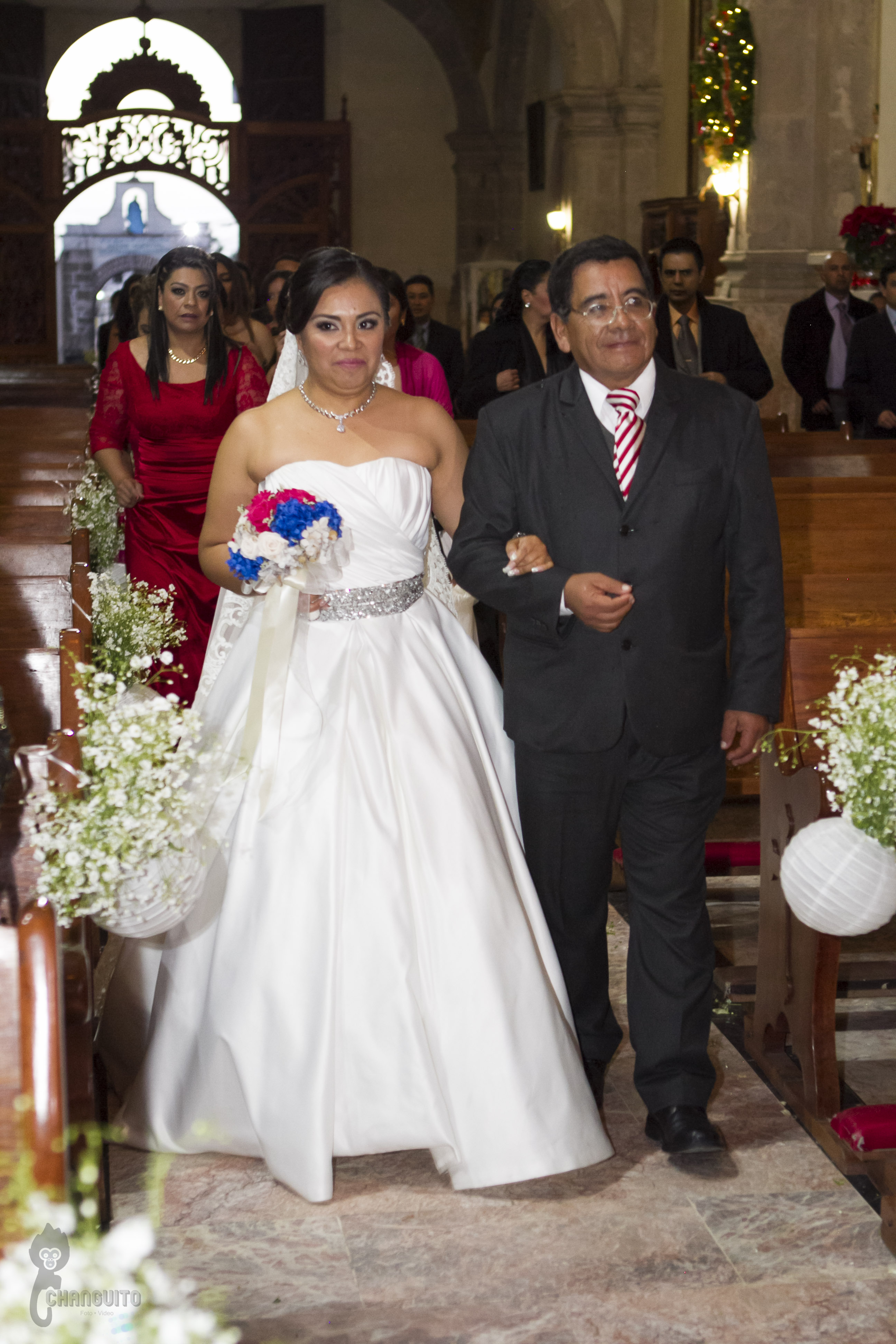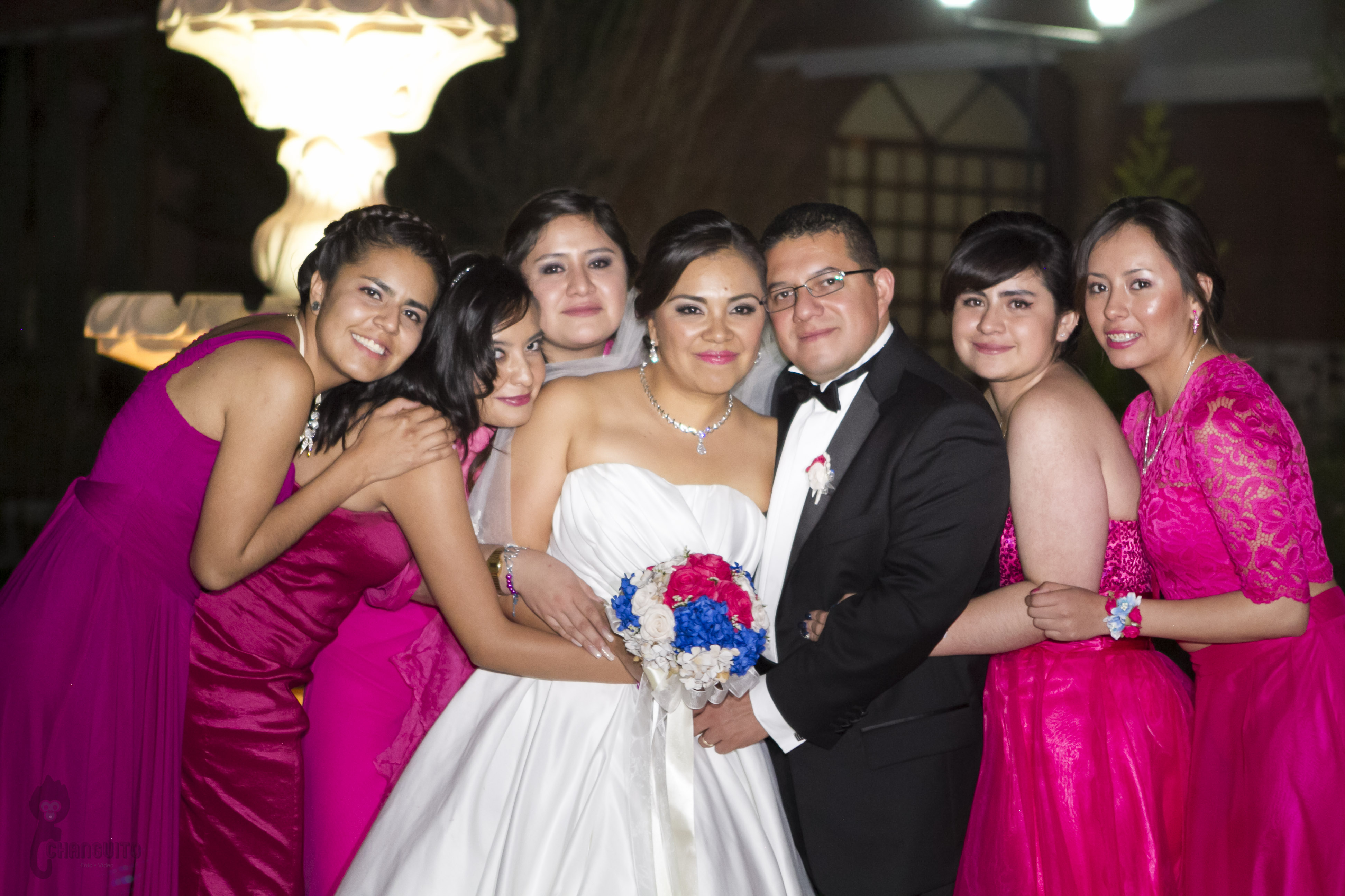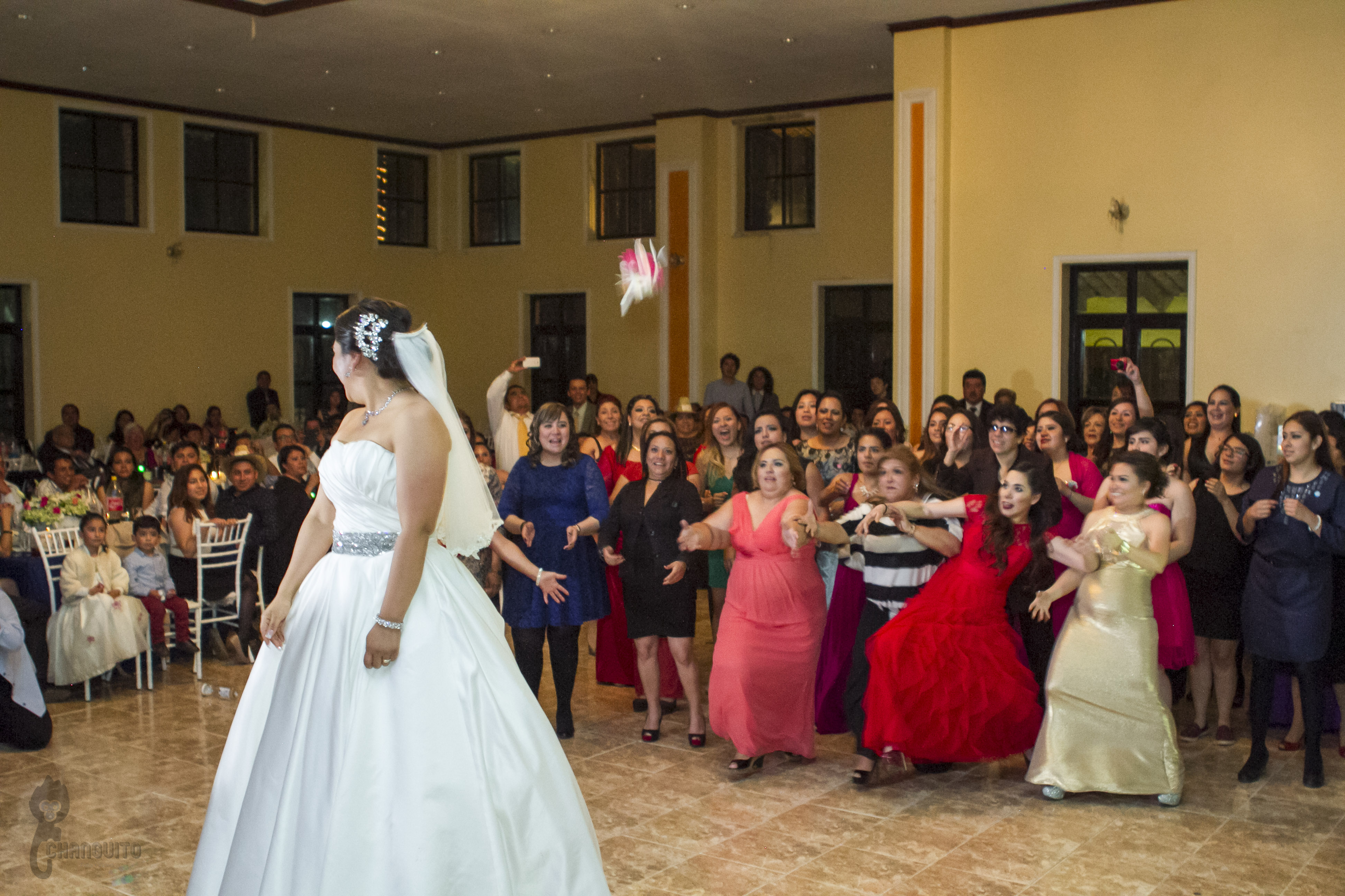 La ceremonia fue bastante emotiva ya que el sacerdote es de la familia y le dedico unas lindas palabras, la sesión de fotos la hicimos en la fuente del obelisco de Periferico y de ahí nos fuimos a un lindo salón en donde los invitados ya estaban llegando preparados para el gran evento, Marijo entro regalando ramos de flores a sus seres más queridos (su madre, su hermana, sus abuelas, tias, primas y amigas mas cercanas), para posteriormente bailar con su padre una pieza de vals y de ahí con sus tíos y padrinos.