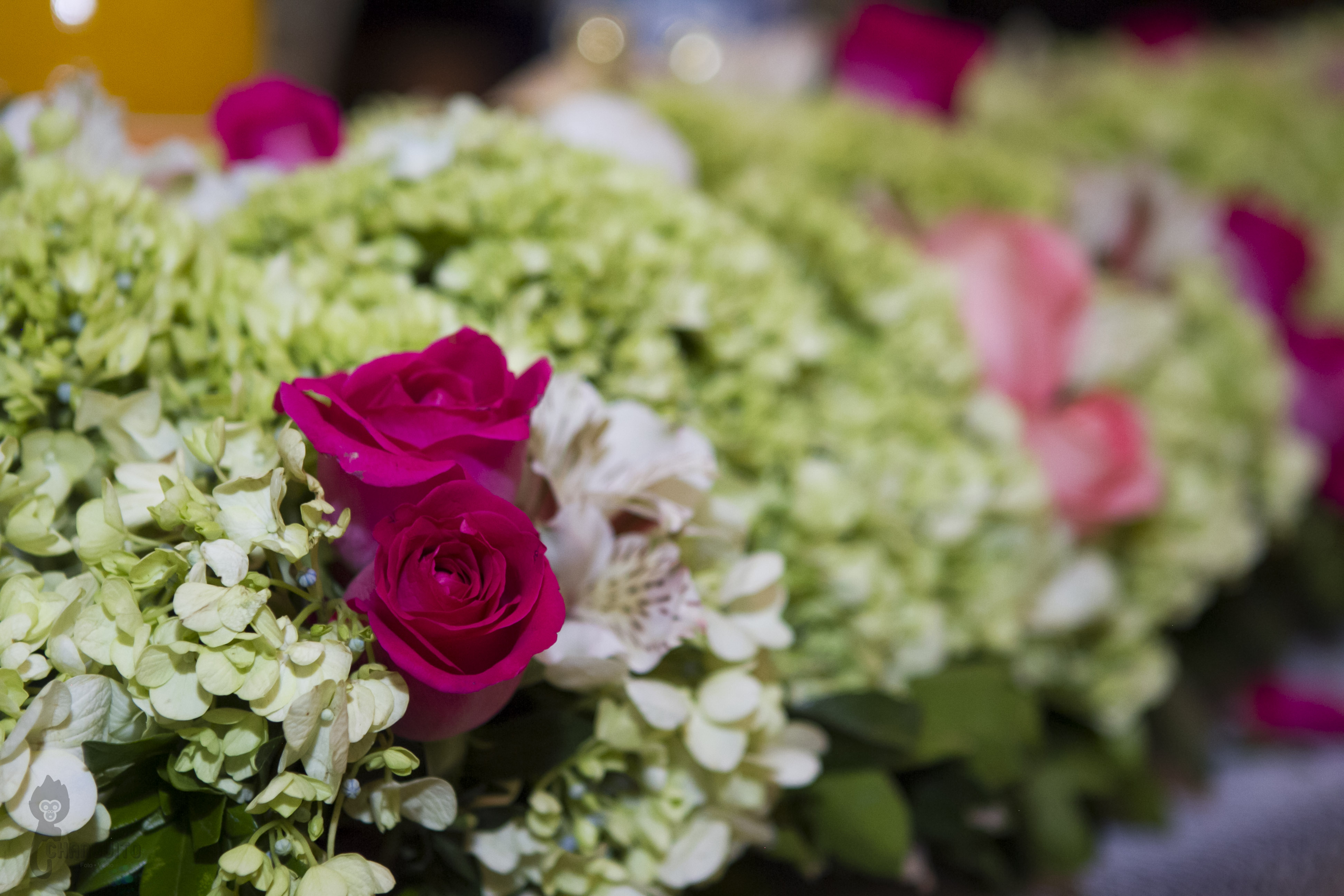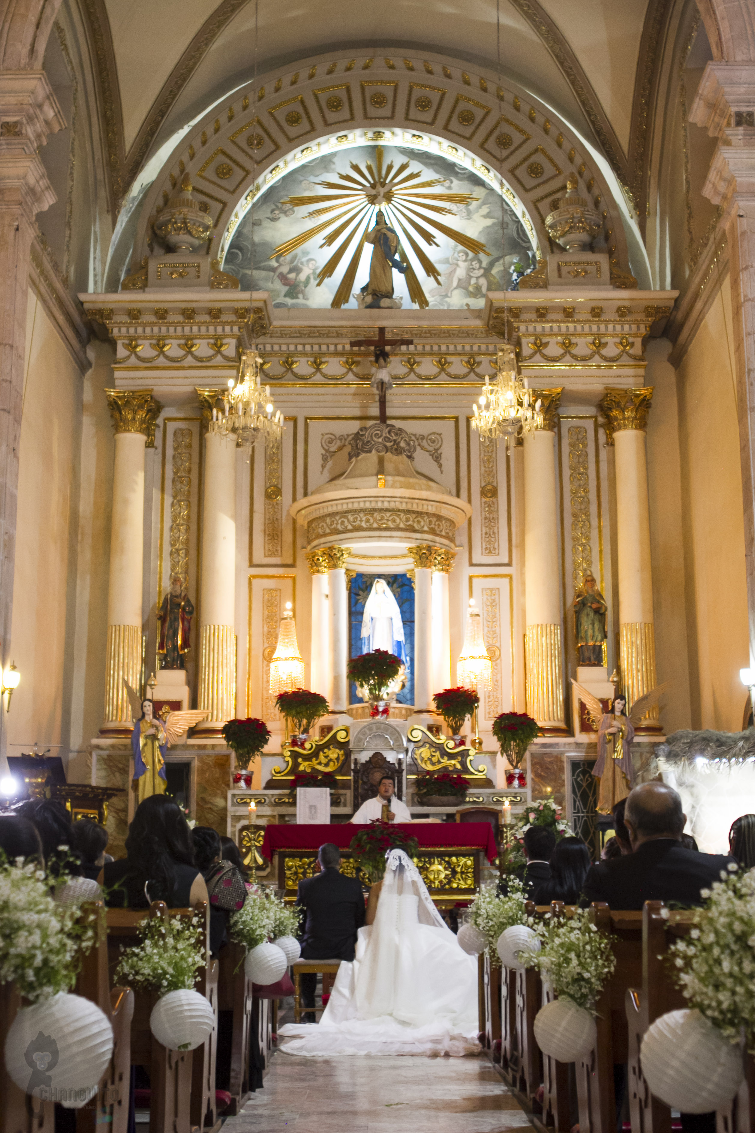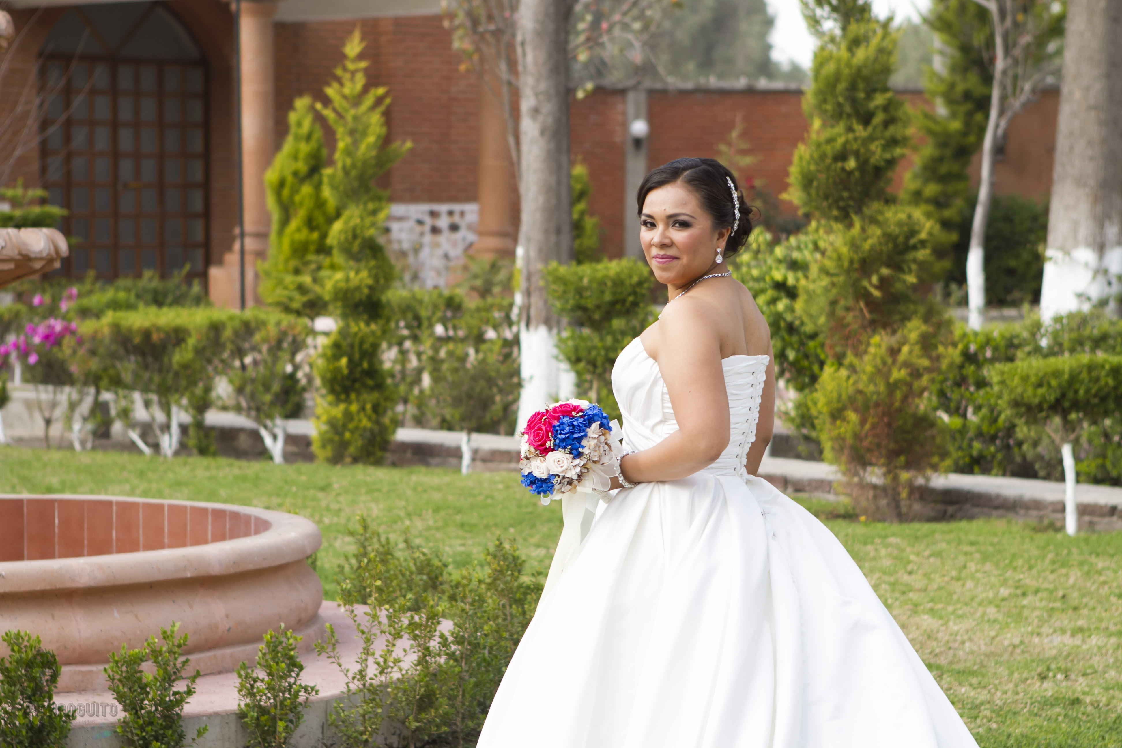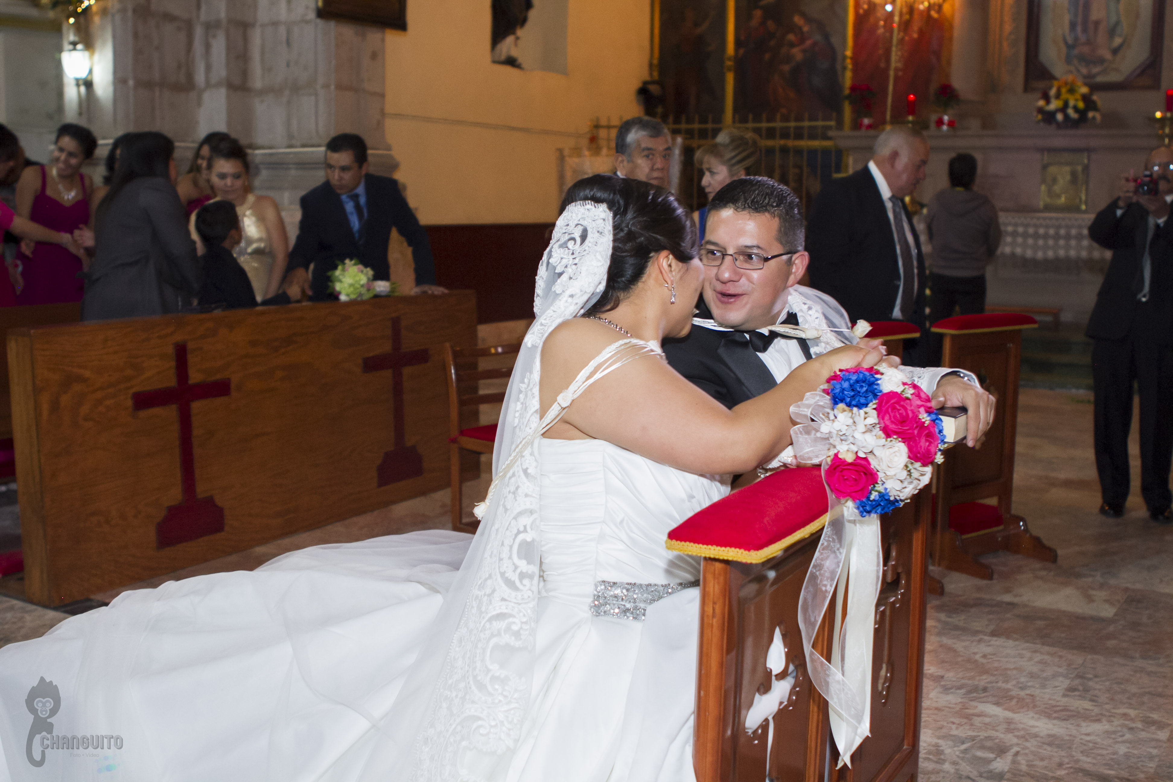 La ceremonia fue bastante emotiva ya que el sacerdote es de la familia y le dedico unas lindas palabras, la sesión de fotos la hicimos en la fuente del obelisco de Periferico y de ahí nos fuimos a un lindo salón en donde los invitados ya estaban llegando preparados para el gran evento, Marijo entro regalando ramos de flores a sus seres más queridos (su madre, su hermana, sus abuelas, tias, primas y amigas mas cercanas), para posteriormente bailar con su padre una pieza de vals y de ahí con sus tíos y padrinos.